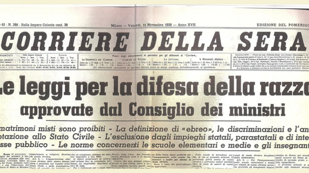 Il Manifesto degli scienziati razzisti o, in forma abbreviata, Manifesto della razza, fu pubblicato, con il titolo Il fascismo e i problemi della razza, il 14 luglio 1938 su Il Giornale d’Italia. Il testo delinea i tratti del nuovo razzismo fascista alla fine degli anni Trenta: ispirato a quello emanato in Germania nel 1935, vi si sostenevano la concezione biologica del razzismo, l’esistenza di una pura razza italiana e la non assimilabilità degli ebrei, che costituivano una razza non europea. Si trattava di posizioni nuove per il fascismo e per la cultura italiana, che conosceva sì correnti razziste al proprio interno, ma era rimasta fino a quel momento estranea alle elaborazioni del nazismo. Per queste ragioni il Manifesto suscitò forti perplessità tra gli intellettuali italiani, che tuttavia non tardarono ad aderirvi, e nel mondo cattolico.