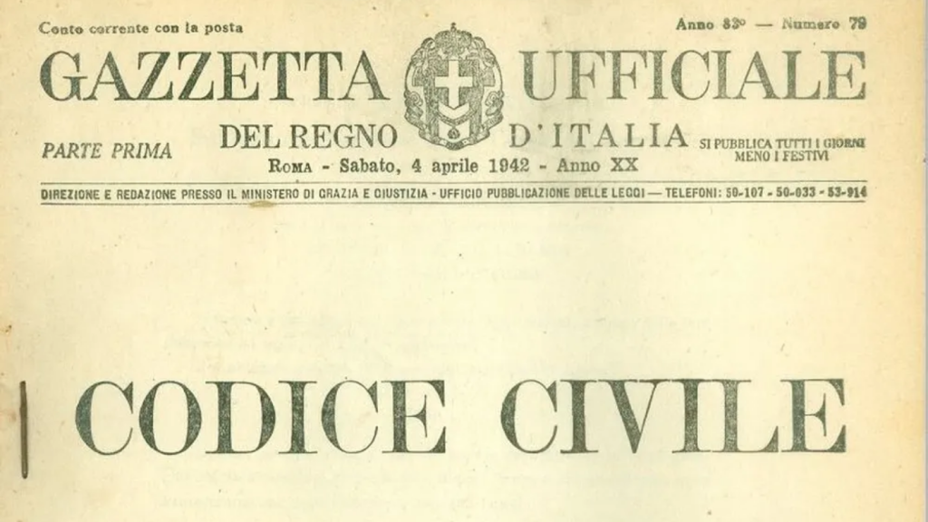 Con il R.D. del 16 marzo 1942, n. 262, venne approvato il nuovo Codice civile, che sostituiva quello del 1865, e se ne fissò l’entrata in vigore al 21 aprile dello stesso anno. Il codice contiene sia la disciplina del diritto civile che quella del diritto commerciale, in precedenza dettate in codici distinti. Pur essendo ancora vigente, esso è stato sottoposto a numerose modifiche e integrazioni (riforma del diritto di famiglia italiano del 1975; riforma del diritto internazionale privato italiano del 1995).